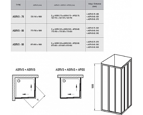 Душевая дверь Ravak Supernova ASRV3-80 198 15V403R2Z1 профиль Черный стекло Transparent