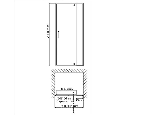 - Регулировочные размеры (ШхВ): 890-905 х 2000 мм.