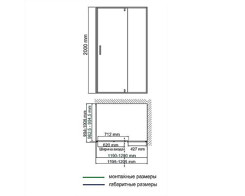 - Габаритный размер: 1195-1205х994-1006 мм.