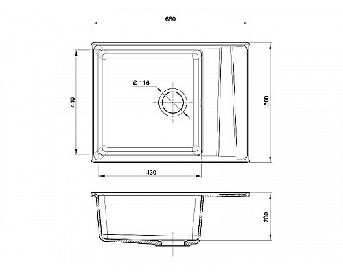 С крыломПрямоугольная кухонная мойка GranFest Level GF-LV-660L.
