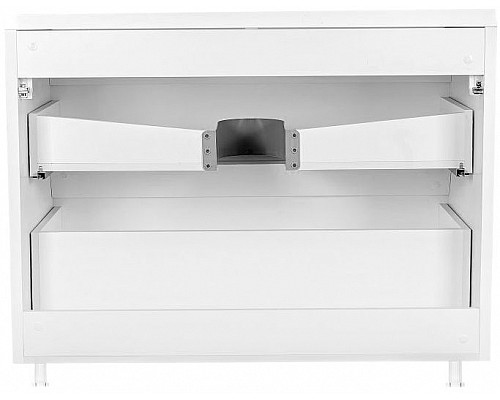 С раковиной из искусственного камня (литьевого мрамора)Тумба под раковину на ножках Style Line Атлантика Люкс Plus 100 СС-00000692 с двумя выдвижными ящиками. Предназначена для использования в ванных комнатах с повышенной влажностью. Ящики оснащены доводчиками для плавного закрывания.